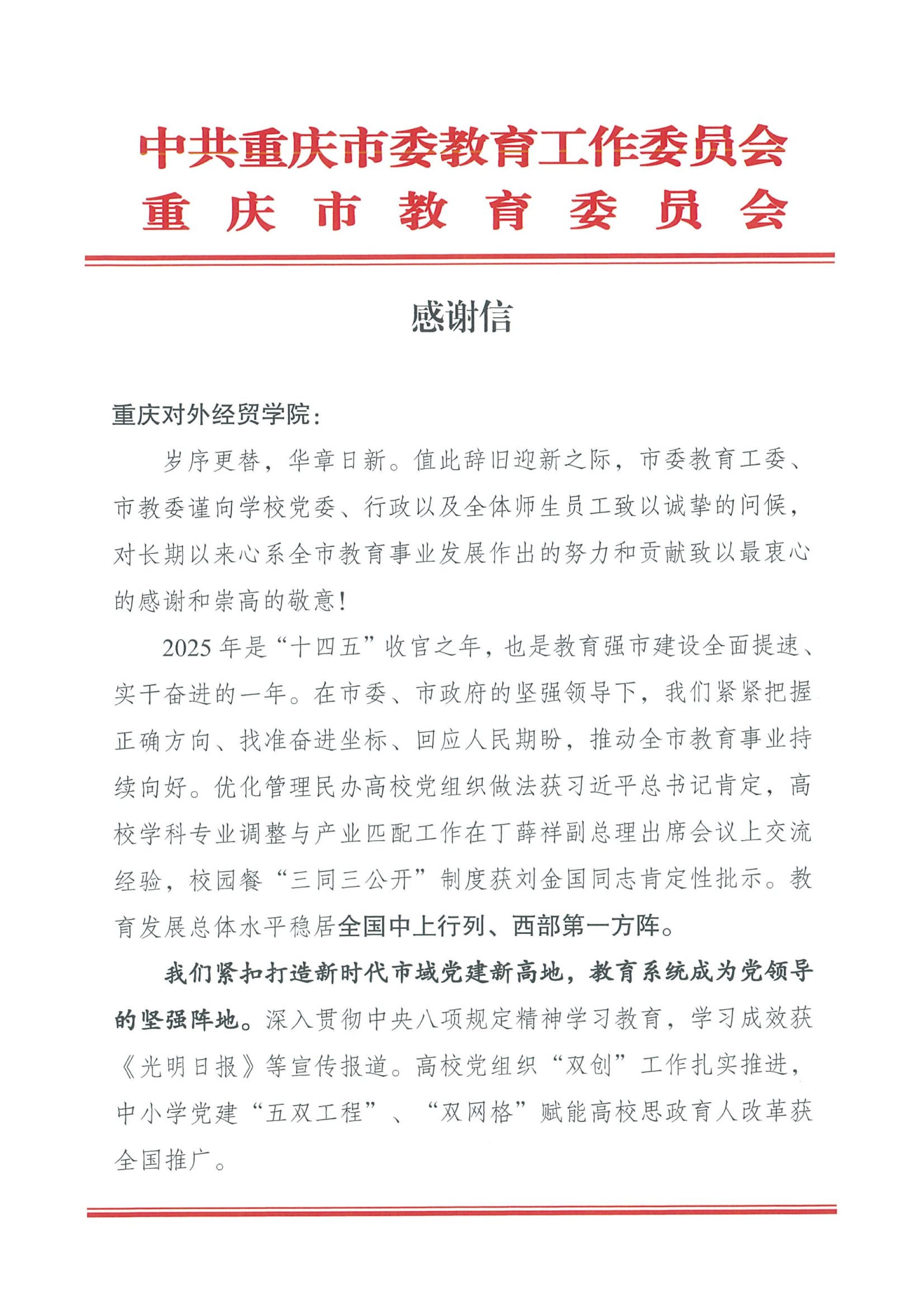 学校收到市教委的新春问候与谢意
