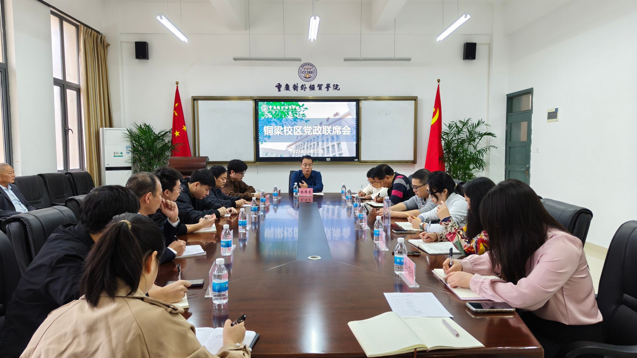 10月20日,铜梁校区召开党政联席会,深入部署评估冲刺阶段重点任务,凝聚全校区力量以扎实作风、严实举措迎接即将到来的正式评估检验。校区各职能部门及二级学院负责人参会,共同为评估工作谋思路、定举措。