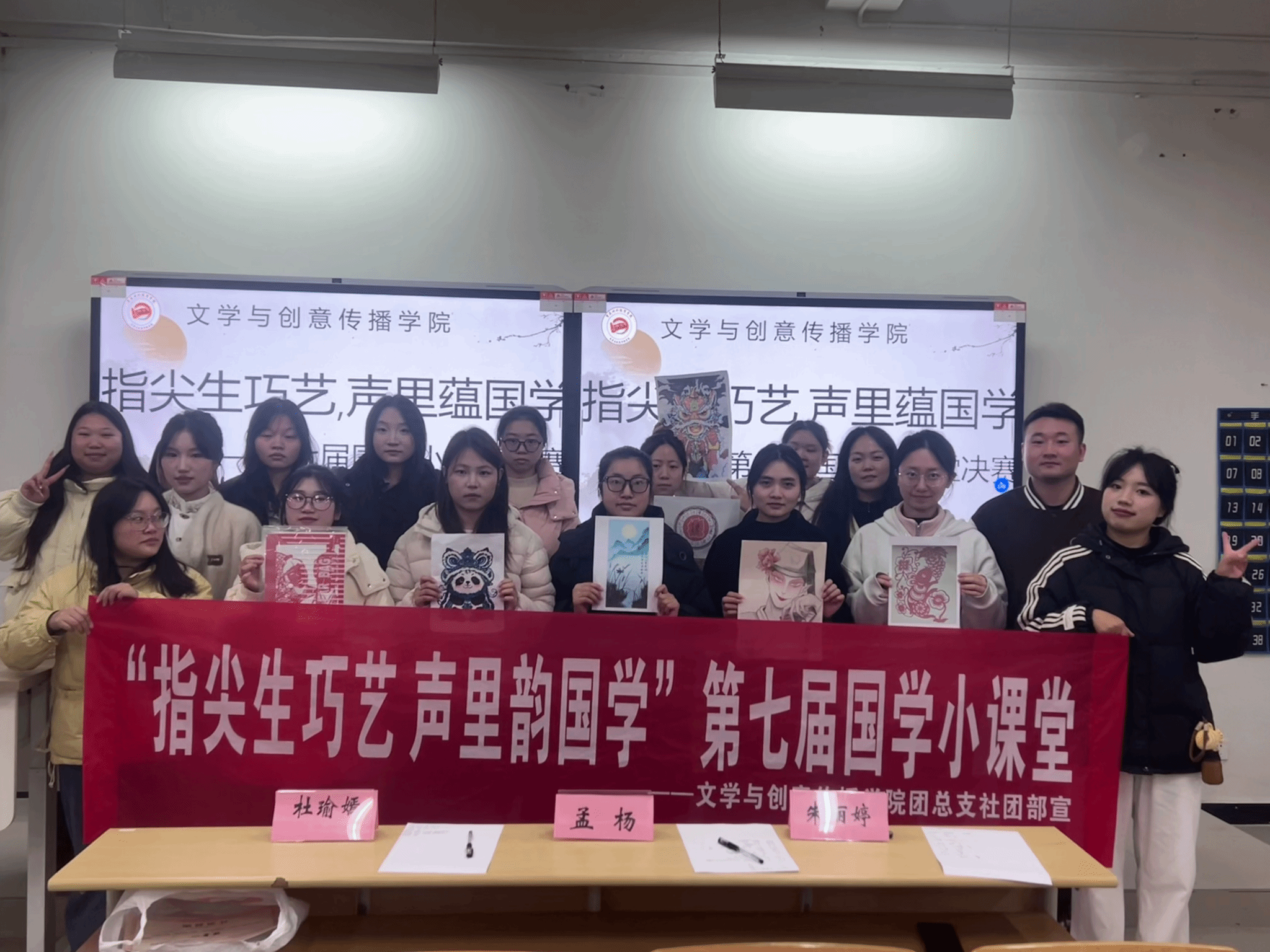 12月5日,由重庆对外经贸学院文学与创意传播学院团总支社团部承办的“指尖生巧艺,声里蕴国学”第七届国学小课堂决赛在铜梁校区3403教室成功举行。本次活动以LOGO创意设计、传统绘画及剪纸技艺展示为核心竞赛内容,为全校师生打造了一场兼具传统韵味与现代创意的国学文化盛宴,有效推动中华优秀传统文化在大学校园内的传承与创新。