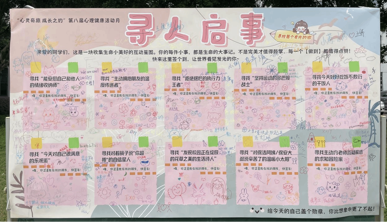 未来,学校将持续深化心理健康教育的形式与内容,让心理健康成为学生成长路上的“必修课”,助力每一位学生在心灵奇旅中收获成长,在成长之约中遇见更好的自己。