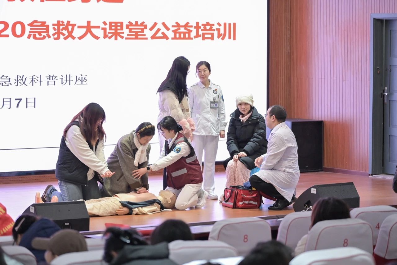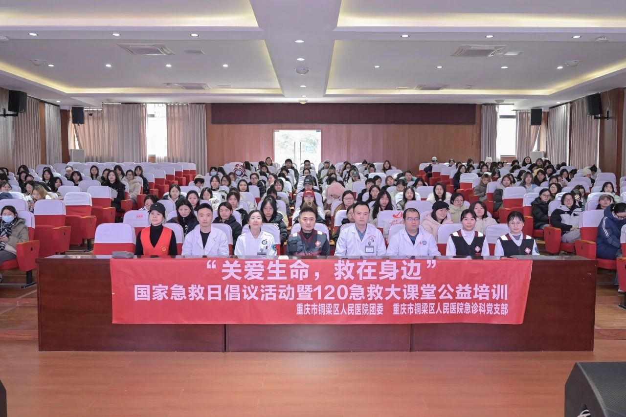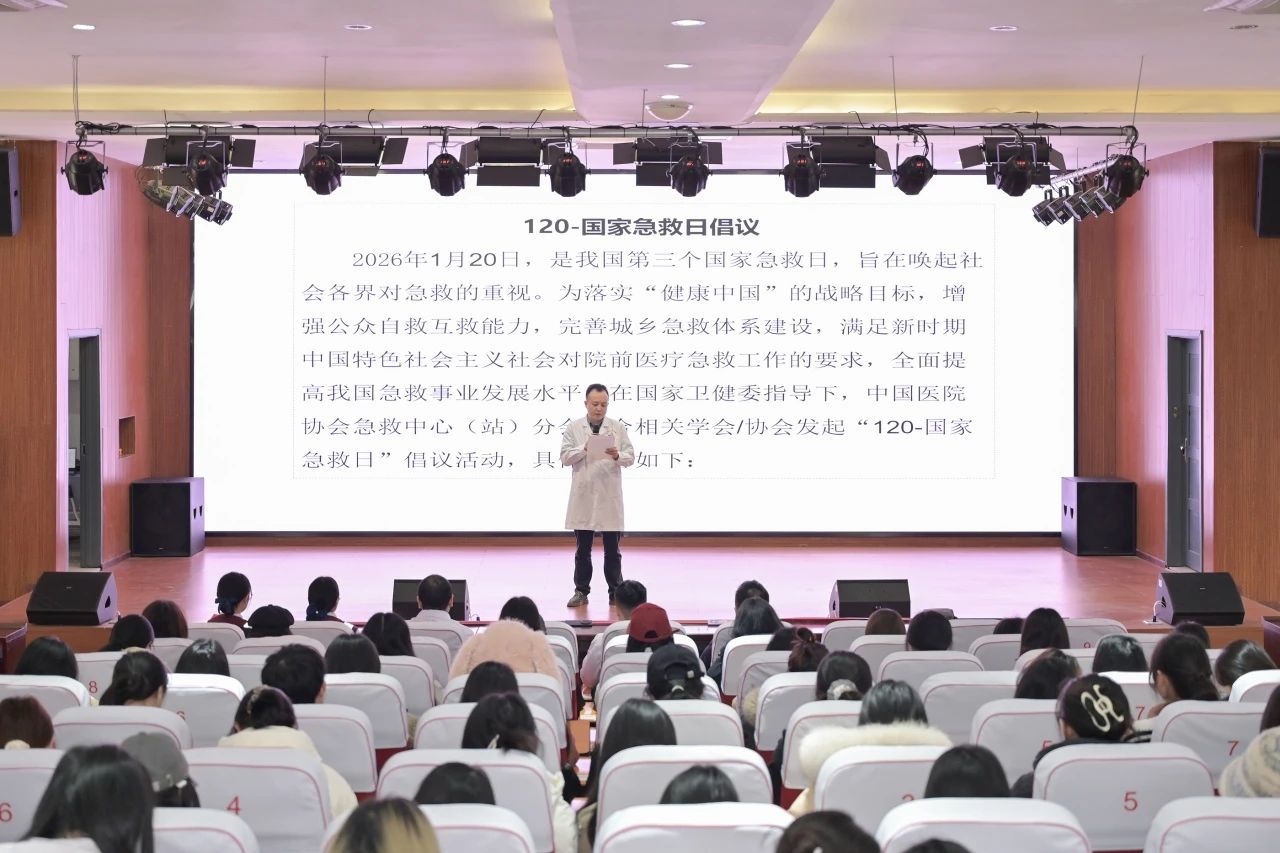 为响应中国医院协会急救中心(站)分会“国家急救日倡议活动暨120急救科普大课堂公益培训”号召,增强高校师生自救互救能力,完善社会急救体系建设,铜梁区人民医院联合重庆对外经贸学院于1月7日在该校铜梁校区寰经礼堂开展“关爱生命,救在身边”急救知识普及宣传活动,全校约200名师生代表参与本次活动。