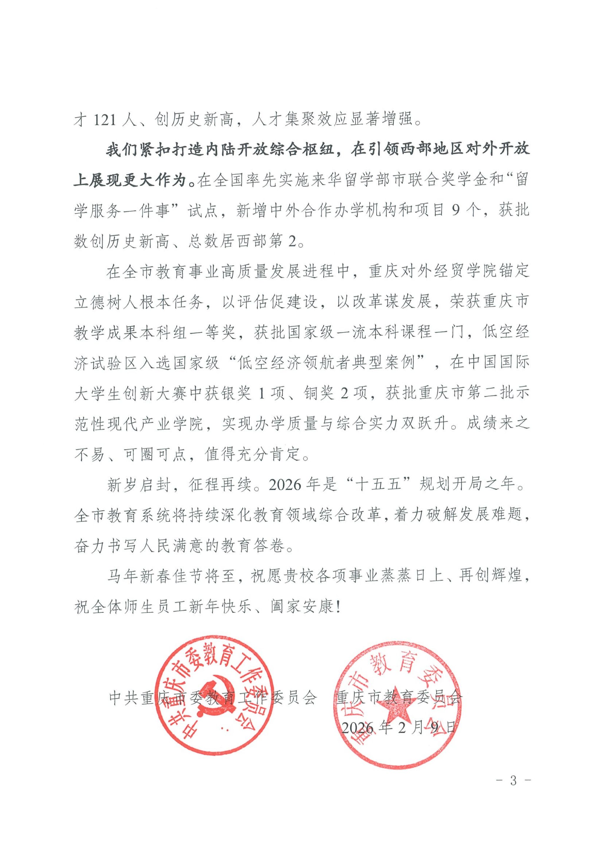 学校收到市教委的新春问候与谢意